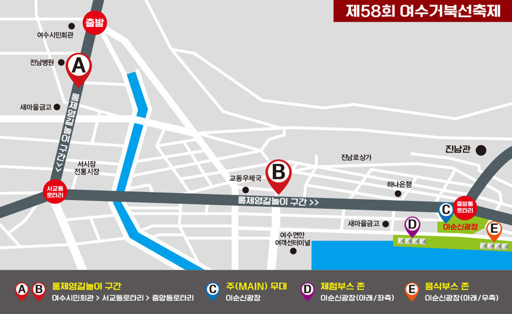 - 주요 장소: 이순신광장, 종포해양공원, 여수진남관 일대