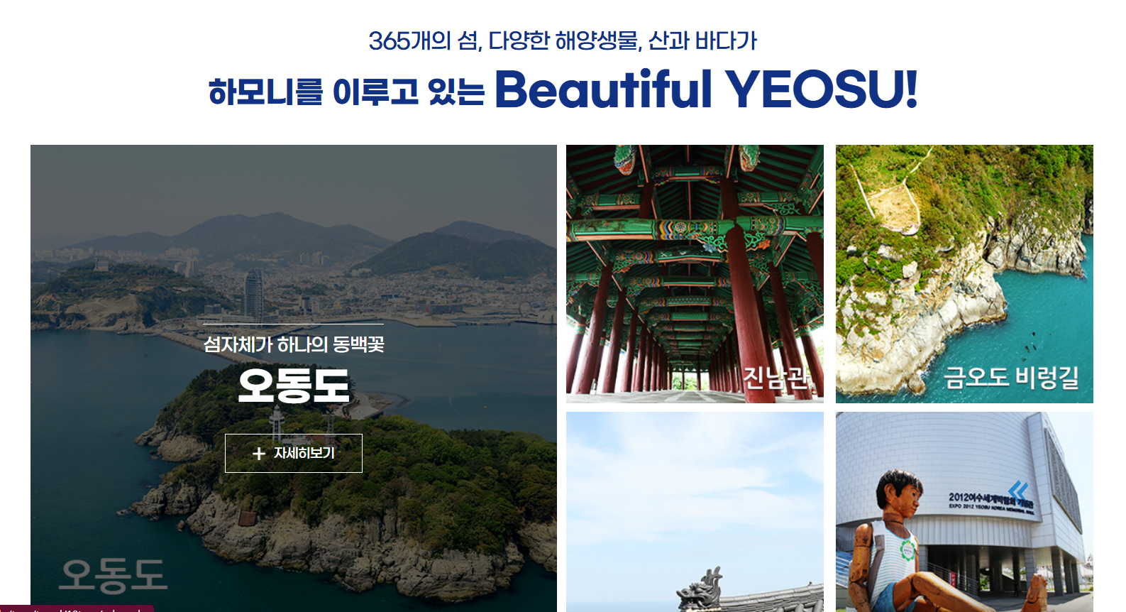 - 인기 맛집: 여수 돌게장 골목, 갓김치 삼합, 해물뚝배기