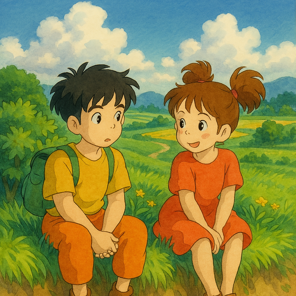 지브리 스타일을 잘 표현하려면 감정과 상황이 떠오르는 장면을 떠올려보세요. 예를 들어: